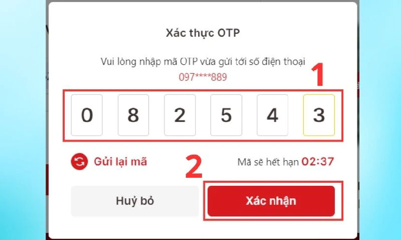 - Bước 6: Sau khi nhập xong mã OTP, nhấn “Xác nhận”.
