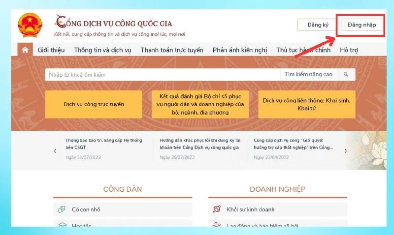 - Bước 1: Truy cập Cổng dịch vụ công quốc gia
